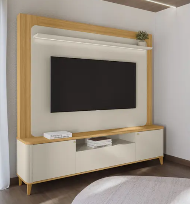 Estante para TV até 70 Polegadas com Led, Pés em Madeira Maciça